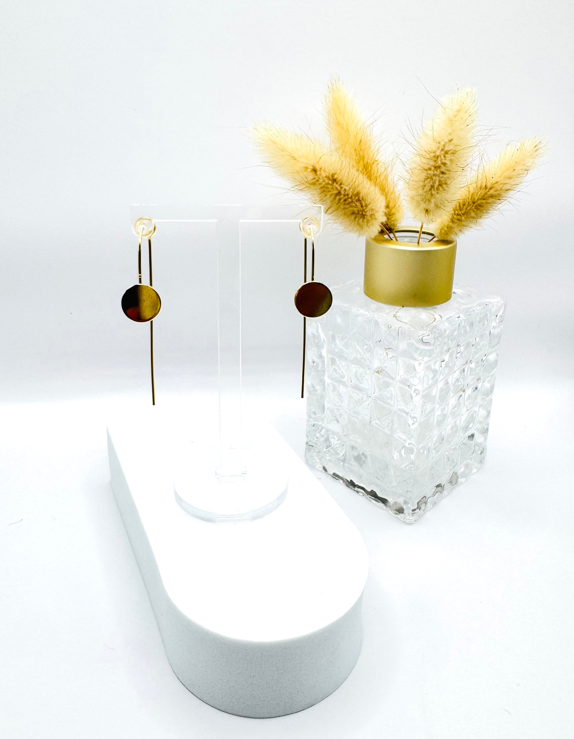 Long golden earrings with circular