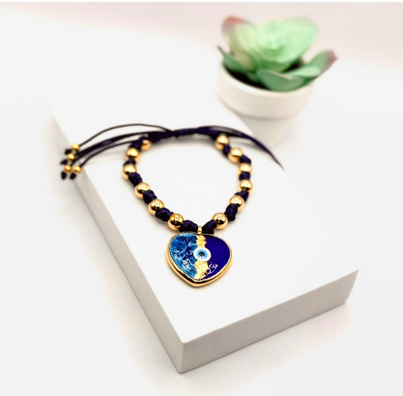 a heart-shaped charm with an eye
